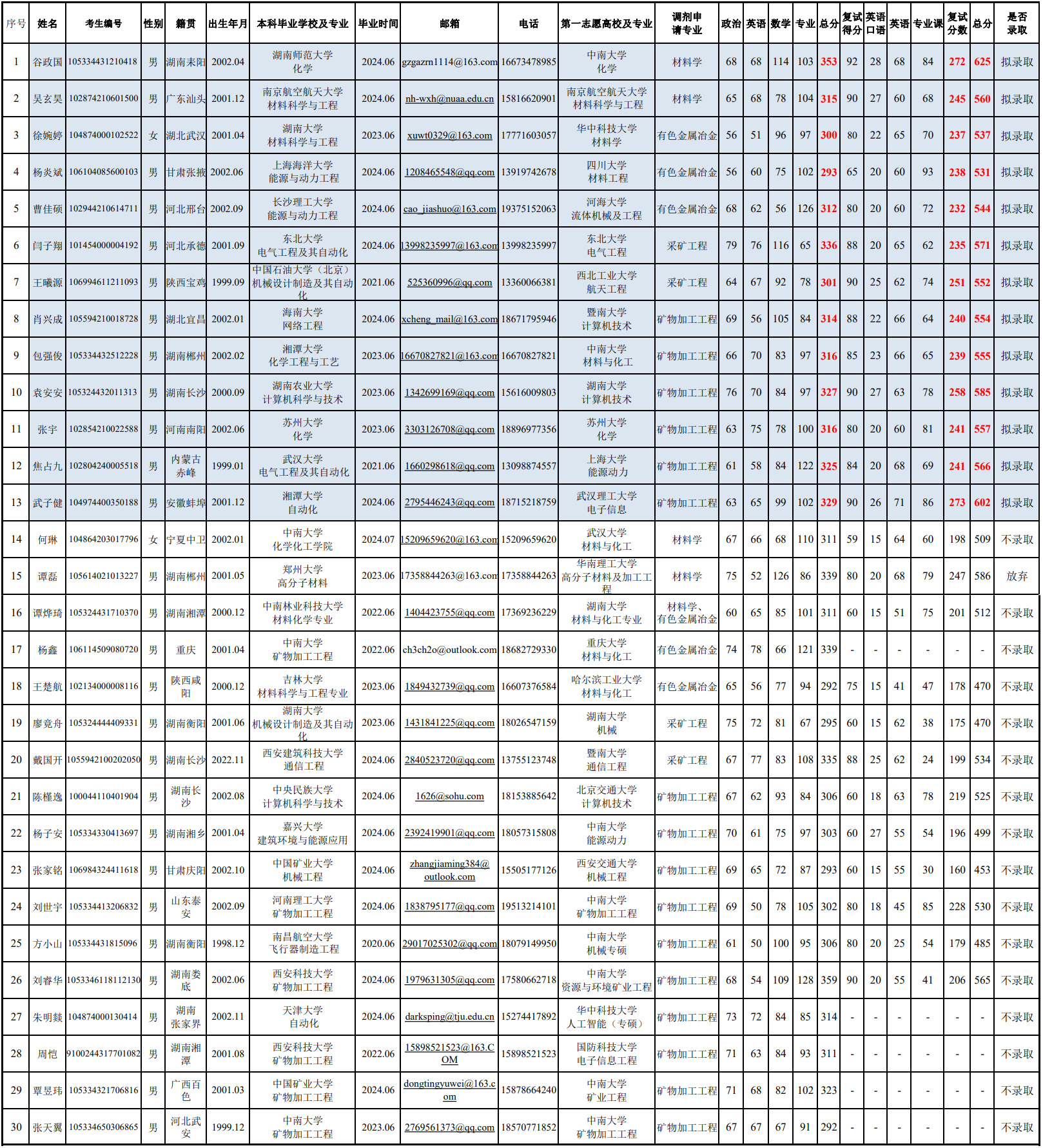 长沙矿冶研究院2024年拟录取硕士研究生公示名单